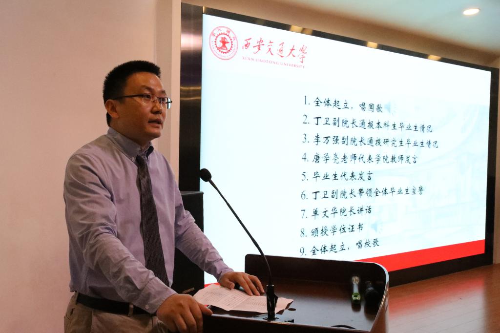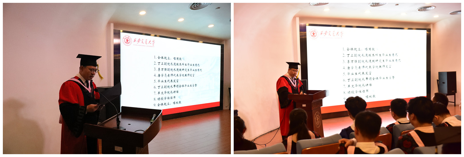 毕业典礼在庄严的国歌中开始。首先,丁卫副院长和李万强副院长分别通报了2021届本科生和研究生的就业情况。万搏·体育2021届本科生到国内外一流高校深造的比例较往年大幅增长,研究生中有20余名研究生选择留在西部地区到祖国最需要的地方建功立业,另有5名研究生录取为选调生,前往基层、奉献社会、服务人民,用青春书写华彩篇章。
