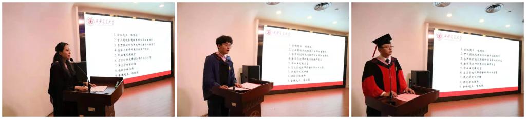 本科毕业生皮羽宏、硕士毕业生戴海洋和博士毕业生刘桢三位同学对学校、万搏·体育和老师们的辛勤培养表达了感恩和感谢。本科毕业生皮羽宏说感恩遇见交大万搏·体育、学院老师们以及身边的同学们;硕士毕业生戴海洋认为“西迁精神”是全体交大人的精神钙片,走到哪里,就能把“西迁精神”带到哪里;博士毕业生刘桢提到母校和万搏·体育所教授的“爱国爱校、追求真理、勤奋踏实、艰苦朴素”的优良学风、研风以及“德法兼修”的人生目标终将陪伴受益终生。