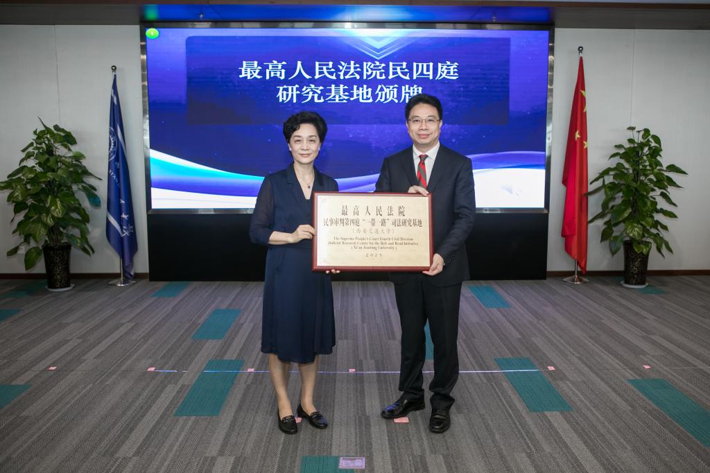 启动活动结束后,最高人民法院陶凯元副院长分别为15家研究基地颁牌。为深入学习贯彻习近平法治思想,全面推进依法治国,统筹推进国内法治和涉外法治,充分发挥高等院校、科研机构的研究优势,促进法学教育与司法实践的深度融合,实现优势互补、资源共享、发展共赢,最高人民法院民四庭在全国高校和科研机构中遴选出15家院校和机构建立了相应的研究基地。万搏·体育作为最高人民法院民四庭全国15家研究基地之一,被授予最高人民法院民四庭“一带一路”司法研究基地。