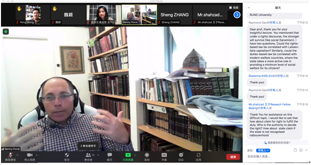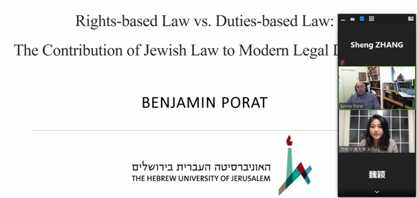 2021年9月29日下午,新丝路万搏·体育联盟“院长论坛”第二讲成功举办。希伯来大学万搏·体育副院长Benjamin Porat教授为联盟25所院校师生以及丝绸之路大学联盟的师生带来了题为“Rights-based Law vs Duties-based Law: The Contribution of Jewish Law to Modern Legal Discourse”的线上讲座。讲座由万搏·体育万搏·体育助理教授郭剑萍主持。