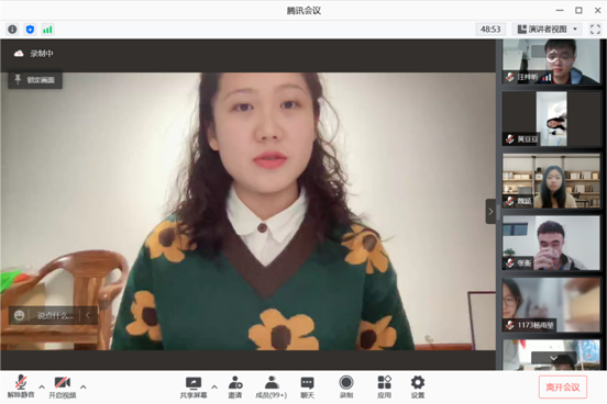 硕士研究生新生代表,硕1171班的屈冠男同学谈到了2020年新冠疫情突然来袭,能够在校园里继续接受教育是一件宝贵又幸运的事情。大家应该珍惜求学的机会,培养基础科研能力,掌握基本科研规范,在读书的时间里享受读书的生活。她希望同学们总是对学习怀有热情,对生活抱有热爱,在向上的集体里做快乐的自己,对过去不后悔,对现在有信心,对未来满是希望。