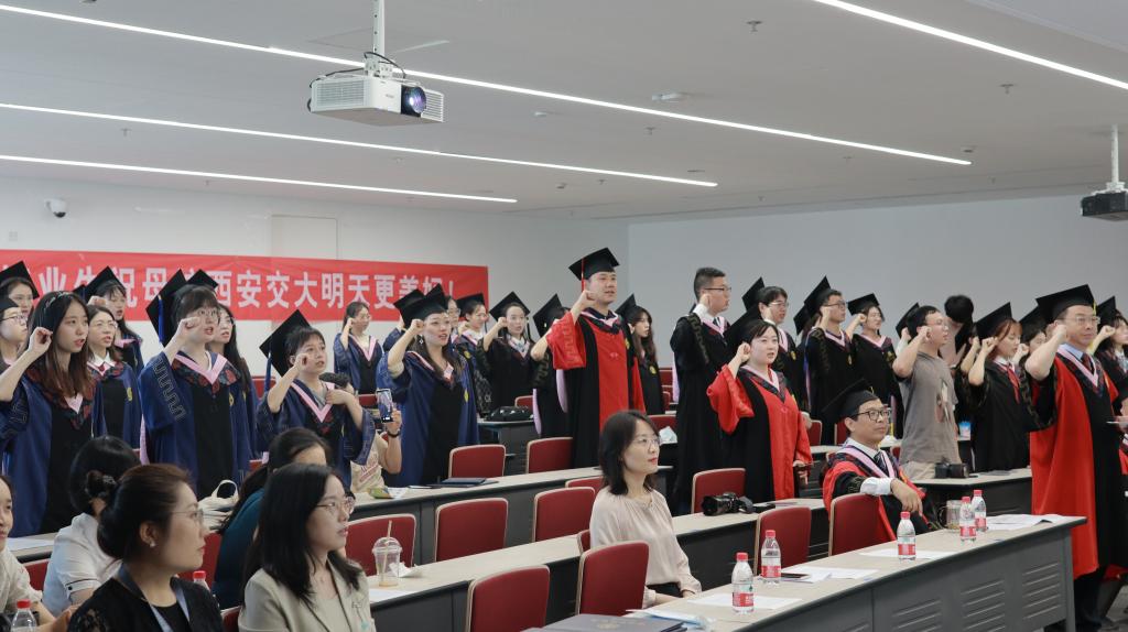 毕业典礼以王保民书记的精彩讲话画上了圆满的句号。王书记首先带领大家重温了西迁精神,核心是爱国主义,精髓是听党指挥跟党走,与党和国家、与民族和人民同呼吸、共命运,王书记高度肯定了万搏·体育学子,万搏·体育学子用实际行动,展现了西迁新传人的精神风采和使命担当。王书记引用习近平总书记的话,勉励各位交大学子,志存高远脚踏实地,把握自己所处时代条件下的机遇,把自身追求融入到党和国家的事业中去,为党和国家多做贡献。王书记还结合就业单位的反馈,希望毕业生从小事做起,迈稳步子,夯实根基,在工作岗位上踏实工作,敢于担当,勇于创新。随后,王书记从“终生学习”的角度出发,提醒同学们不断学习、增长本领,同时坚守自己的誓词,不忘初心,砥砺前行。