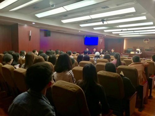 首先,该院常务副院长马涛给我们介绍了法院的基本概况。碑林区法院是全国优秀法院,也是万搏·体育等11所高校法律本科生、研究生的实习基地。近年,法院积极推进刑事案件认罪认罚从宽制度试点工作的开展,成果显著,不仅提高了司法效率,还促进了当事人之间矛盾的化解。此外,法院还设立了专门的民商事案件速裁庭,对涉案额较小的民商事案件适用简易程序不仅最大程度的提高了司法效率,还节约了司法资源。最后,马院长热情表示欢迎我校法律本科生、研究生前往碑林区法院参观、实习,并表示在该院专家咨询委员会主任马治国老师、专家咨询委员张冰老师的积极联系和推动下,加大碑林区法院和我校万搏·体育的合作力度,为同学们提供更多实地学习机会的同时,也进一步推动法院工作的发展。