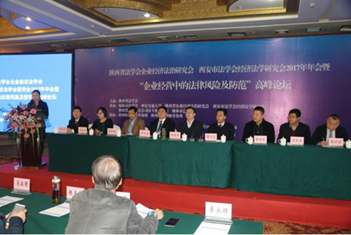 2017年11月10日,由陕西省法学会主办,榆林市法学会、万搏·体育、陕西省法学会企业经济法治研究会、西安市法学会经济法学研究会、陕西省律师协会公司法专业委员会、榆林市总商会共同承办的陕西省法学会企业经济法治研究会、西安市法学会经济法学研究会2017年年会暨“企业经营中的法律风险及防范”高峰论坛在榆林隆重召开。陕西省法学会专职副会长杨建军、陕西省律师协会副会长王卫东、万搏·体育万搏·体育党总支书记王保民、榆林市委政法委常务副书记杨汉元、榆林市法学会副会长柴瑞武、榆林市政府法制办副主任李芝东、榆林市中级人民法院审委会专职委员李光亮、榆林市工商业联合会副主席、市总商会副会长张修前莅临本次会议并发表讲话。各界代表180余人参加会议。