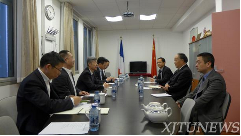 访问结束后,张书记一行专程拜访了中国驻法使馆教育处。公使衔参赞杨进会见了代表团一行,对西安交大访问法国高校表示热烈欢迎。他介绍了法国高等教育特点和中法高等教育交流的基本情况,希望西安交大加强与法国高校的交流合作。张书记介绍了西安交大近年来的发展思路,着重介绍了创新港建设的进展。张书记表示,近年来西安交大不断改善软硬件环境,不遗余力吸引海内外人才加盟,不仅希望为来自世界各地的青年学者提供筑梦平台,希望在驻法使馆教育处能够多宣传西安交大,鼓励法国学生到交大留学深造,引导青年才俊到西安交大谋求事业发展。杨公参表示将全力支持西安交大与法国高校的实质性合作。