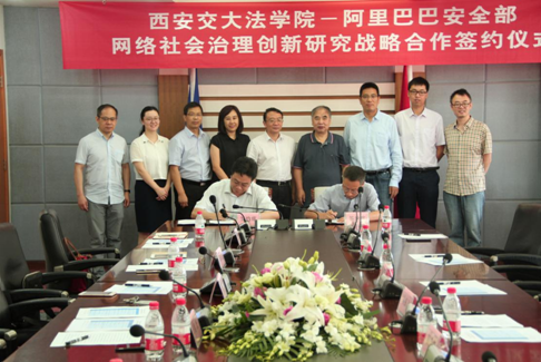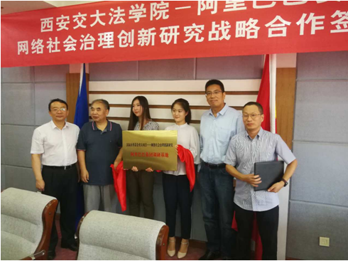 单文华院长与侯金刚总监代表双方签署了万搏·体育万搏·体育与阿里巴巴安全部网络社会治理战略合作协议书。西安交大副校长席光、信息安全法律研究中心主任马民虎与阿里巴巴集团首席风险官刘振飞、安全部资深总监侯金刚,为“国家社科基金重大项目——网络社会治理创新研究阿里巴巴集团调研基地”揭牌。