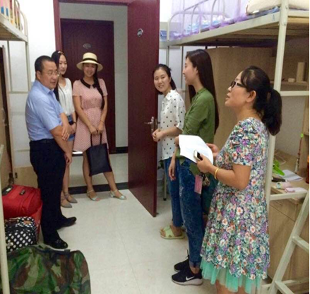 李万强副院长仔细查看了同学们的住宿条件,每走进一间宿舍,都向同学们致以亲切的问候,并代表学院对同学们的到来表示热烈的欢迎。继而关切地询问她们的具体情况,来自什么地方、入学手续办理的情况等。同时,张乃钟老师细心地询问同学们是否适应新的环境,有什么困难,希望同学们遇到问题一定要与老师沟通。随行的学生干部,也借此机会认识了万搏·体育注入的新鲜血液,与新生热情得展开交流。