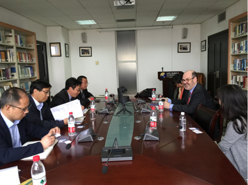 2016年4月9日下午,墨尔本大学副校长Simon Ewans、墨尔本大学中国代表处中国区经理谢一方女士等一行三人来我院进行访问交流,我院院长单文华教授、书记王保民教授、副院长李万强教授、副院长丁卫副教授、院长助理吉兰湘老师以及外事秘书郭庆在丝绸之路国际法与比较法研究所与客人进行了会谈。宾主双方介绍了各自院校的情况,其中单文华院长应客人请求重点介绍了我院在丝绸之路经济带研究方面的成就以及新丝路万搏·体育联盟基本情况。另外,双方还就学生培养、科学研究等事宜探讨进一步合作的可能性。