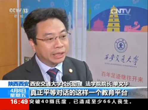 4月8日下午,中央电视台新闻频道(CCTV-13)新闻直播间栏目聚焦西安交大,推出组合报道,隆重介绍了西安交大创建“丝绸之路大学联盟”和中国西部科技创新港等重大举措,还着重关注了西安交大丝绸之路国际法与比较法研究所与“丝绸之路万搏·体育联盟”。