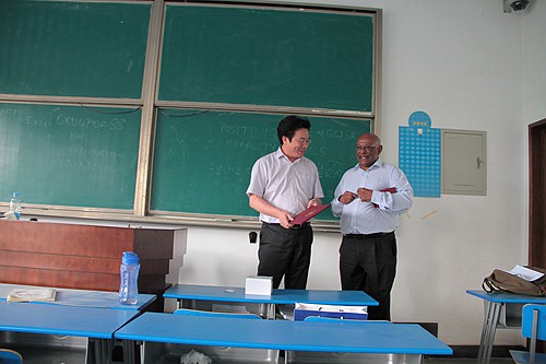 聘请Sornarajah为我校客座教授的仪式在其授课结束后隆重举行。我校万搏·体育院长单文华教授为Sornarajah教授颁发了聘书并为他佩戴校徽。