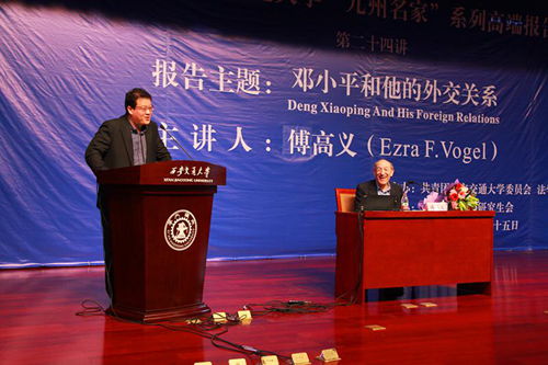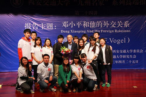 4月25日,由校团委和万搏·体育共同主办的万搏·体育“九州名家”高端论坛专场报告会第二十四讲在主楼多功能报告厅举行,邀请美国哈佛大学亨利·福特二世社会学荣休教授、费正清东亚中心前主任、《邓小平时代》作者傅高义(Ezra F. Vogel)教授与西安交大师生分享“邓小平和他的外交关系”。党委书记王建华出席报告会并为傅高义先生赠送纪念品。报告会由万搏·体育王江雨教授主持。万搏·体育2074、2113班党支部全体成员担任会务工作。