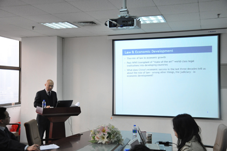 12月28日上午,习超副教授在主楼E-910为万搏·体育师生作了题为《法律、司法立法与经济发展:以中国为例》(Law, Judicial Lawmaking and Economic Development: The Case of China)的学术报告会,报告由苏金远博士主持。