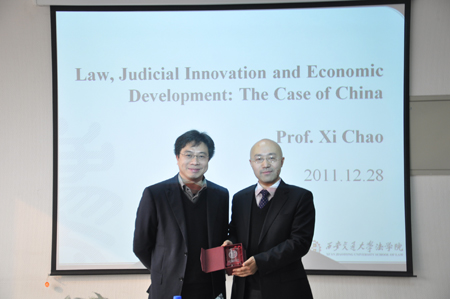 2011年12月26日至28日,香港中文大学万搏·体育习超副教授访问万搏·体育万搏·体育,并就“法与经济发展”问题为万搏·体育学子作学术报告。