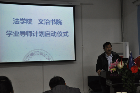 在学业导师计划启动仪式上,万搏·体育党总支书记彭沪生老师首先致辞,他强调了在双院制下,实施法学本科生学业导师制度对人才培养工作的重要性。其次,王保民副院长详细介绍了实施法学学业导师制度的背景,他指出,此次实施法学本科生学业导师制度,目的在于促进学院在专业上给予学生最大的指导,加强其课外专业学习,培养其专业兴趣,提高学生的专业认同感和自豪感。其后,他还对各年级学业导师分配情况、学业导师运行方式做了说明。最后,文治书院常务院务副主任张爱萍老师对实施本科生学业导师制度的必要性及相关内容做了进一步强调。