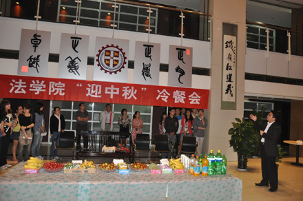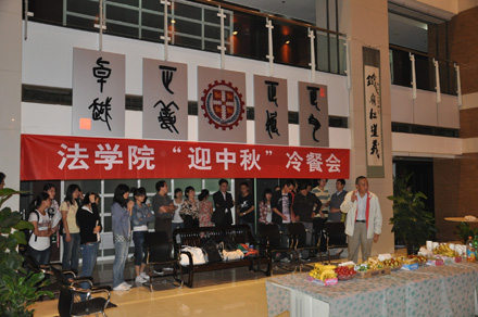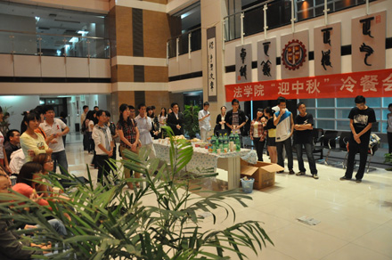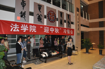 2011年9月8日19:30,万搏·体育 “迎中秋”冷餐会在主楼十楼大厅举行。万搏·体育院长单文华、书记彭沪生、院长助理吉兰湘、刘桥教授和学生工作专职委员张乃钟老师及万搏·体育2011级全体本科生,硕士、博士研究生新生参加了冷餐会。冷餐会由2011级法律硕士新生马沙和马骏飞同学主持。