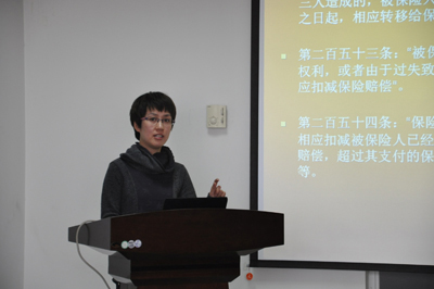 报告人首先介绍了我国海上保险代位求偿权法律体系,接着以中国人民财产保险股份有限公司上海市某支公司诉被告上海某物流公司一案为例,展开保单的代位求偿权相关法律规定的讨论。讨论问题主要包括:1、保险法第45条第一款中的“第三人”代位权行为之行使之对象是否仅限于侵权第三人的问题;2、造成损害的合同行为是否以过错为前提的问题;3、违约与侵权之间的诉因的选择问题。