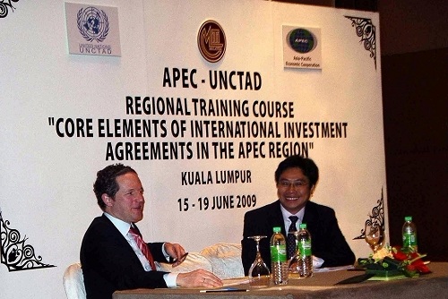 日前,我校万搏·体育院长单文华教授应联合国贸易与发展会议(UNCTAD),亚太经合组织(APEC)和马来西亚贸工部的邀请,作为主讲和评论专家, 参加由这三个机构合作举办的题为“国际投资协定中的核心要素”的高级万搏(中国)班。