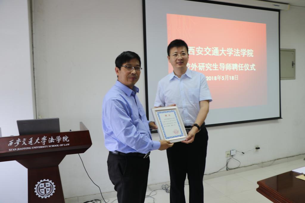 2018年5月18日下午,万搏·体育万搏·体育法律硕士研究生“协同培养育人项目”校外导师(首批)聘任仪式暨专业实践课程教学研讨会在兴庆校区教学主楼910会议室举行。万搏·体育党总支书记王保民教授、副院长李万强教授、副院长丁卫副教授,院长助理张生副教授、教师代表吴锐讲师和研究生代表参加了聘任仪式。
