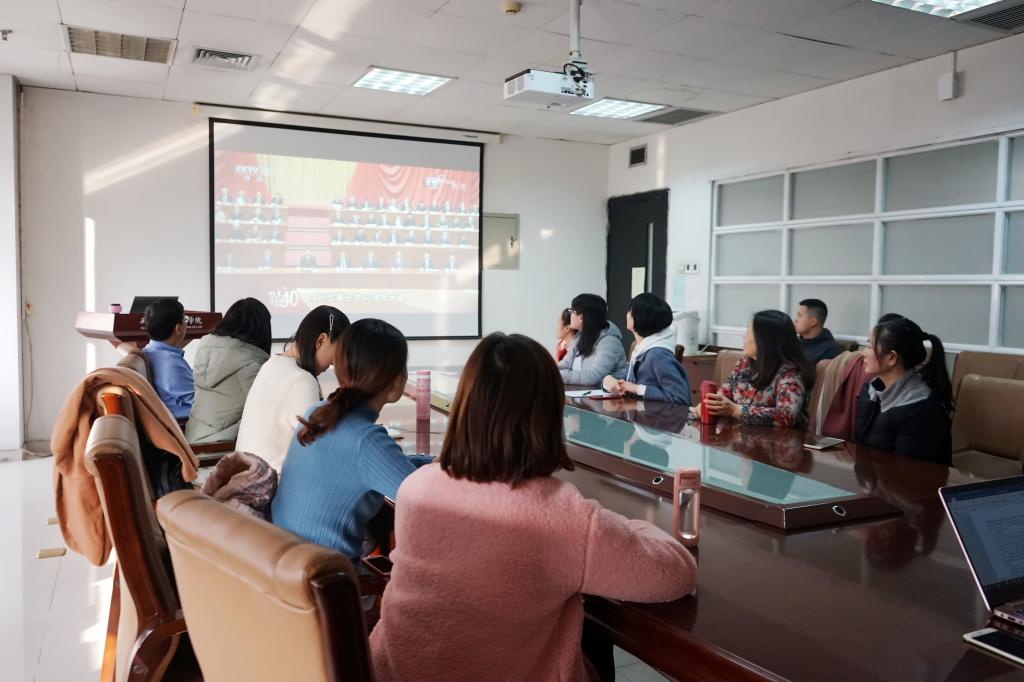 2018年12月18日上午,中共中央、国务院召开大会,隆重庆祝改革开放40周年。万搏·体育党总支组织教师党员、学生党员干部在主E-910会议室集中观看大会直播,认真聆听习近平总书记在大会上的重要讲话。