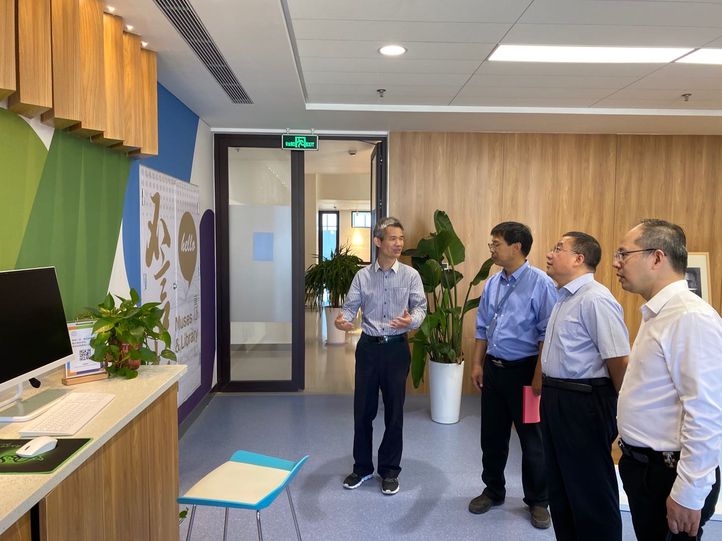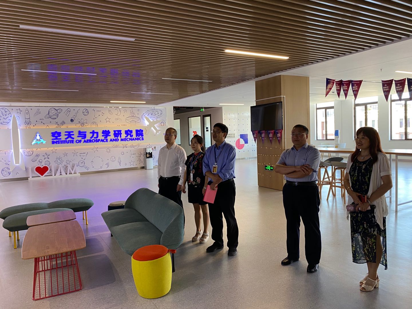 会后王保民书记带领班子成员前往空天与力学研究院、语言文化及国家交流研究中心和公共政策与发展研究院参观学习,交流创新港平台建设经验和“科创月”筹备情况。