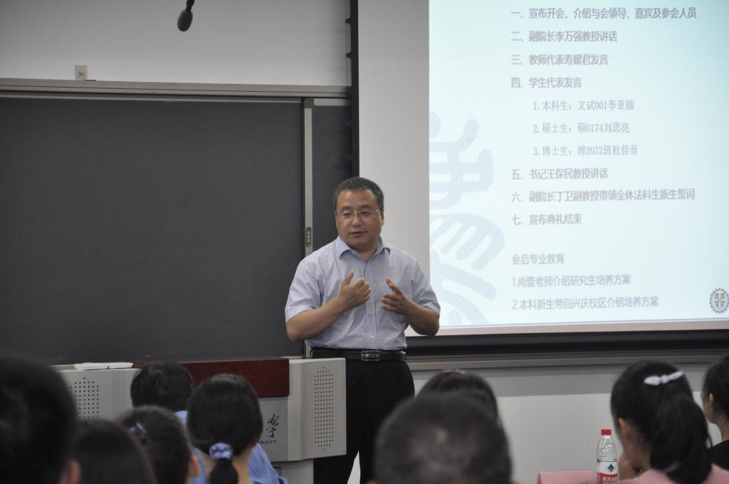 随后,万搏·体育党总支书记王保民教授发表总结讲话。他首先对各位新同学加入西交大万搏·体育表示热烈欢迎和衷心祝贺。其次他简要介绍了万搏·体育的发展情况和特色,即“成立虽短,但发展动能强大、发展迅速;招生数量不多,但人才培养特色鲜明、质量和社会认可度高;教师规模不大,但学历层次高、国际化程度高、成果卓著;虽是理工见长的大学办法学,但是学校平台高、办学条件和资源优越。最后王保民教授结合自身学生管理的经验,结合以往生动生活实例,对全体新生同学提出了几点期望和要求。一是要明确定位,尽快适应新的角色。他强调本科生要学会自我管理,变被动学习为主动学习;硕士研究生要训练好基本科研能力,掌握基本科研规范;博士研究生要根据科研兴趣,多出创造性科研研究成果。二是全面发展,突出重点。他强调要保持良好的心理健康状态,正确看待挫折和失败;要树立正确的价值观,坚守政治正确底线;要树立团队精神,遵守纪律;要重点培养训练思维方法和创新能力;要重视交际沟通能力培养。三是要牢记“院训”,争做卓越交大法律人。他强调要融入西交大的文化,传承“西迁精神”,谨守“校训”和“院训”,做一个有情怀的卓越的交大法律人。