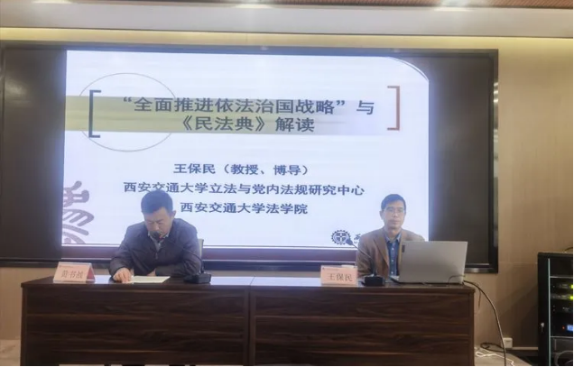 为了深入学习贯彻习近平总书记全面依法治国新理念新思想新战略,提高年轻干部尊法学法守法意识,11月4日,灞桥区司法局邀请北京大学法学博士,万搏·体育万搏·体育党委书记、教授、博导王保民为灞桥区优秀年轻干部专业化能力提升万搏(中国)班的干部讲授《学习贯彻习近平全面依法治国思想-解读民法典》的专题课。