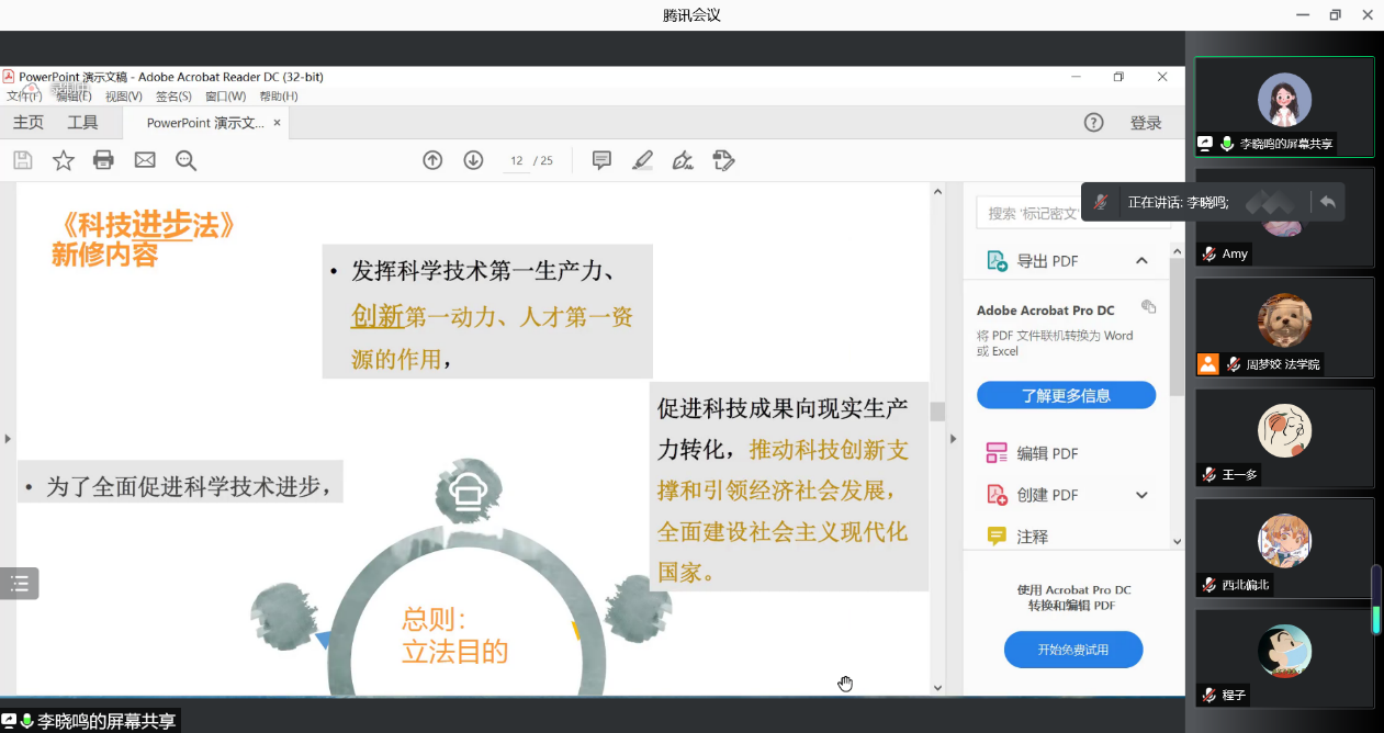 2022年1月9日晚上,万搏·体育万搏·体育知识产权研究中心李晓鸣副教授对修订后的科技进步法的背景、新旧科技进步法的内容进行了对比,并对新科技进步法的亮点进行了详细介绍。同学们表示收获颇丰。