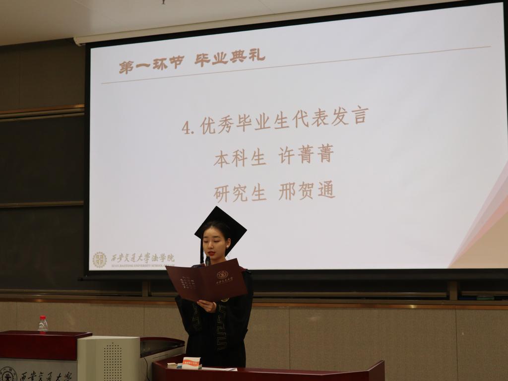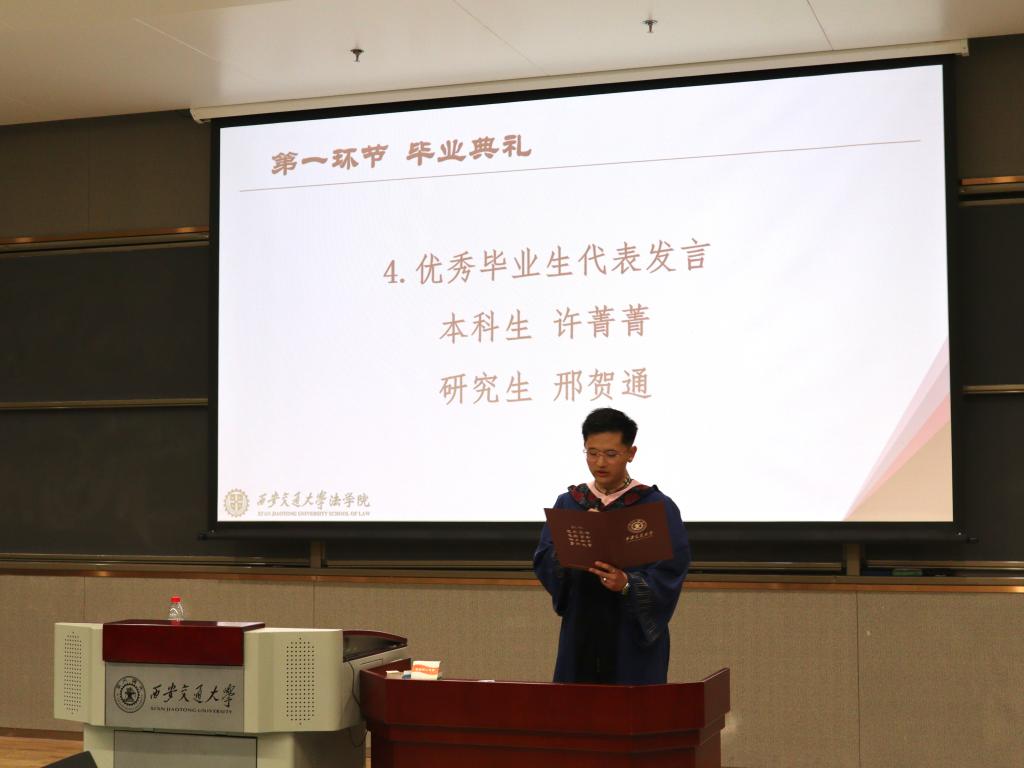 本科毕业生代表许菁菁、研究生毕业生代表邢贺通代表万搏·体育2023届全体毕业生,分享了毕业感悟。“数载励志求学,一朝鲲鹏展翅”,毕业生们即将离开学校、步入社会,两位学生代表一同回忆了在万搏·体育度过的难忘时光,表达了对母校的真挚感谢,对老师的感恩和对同学的不舍,抒发了对学校、学院的祝福和对未来的展望。