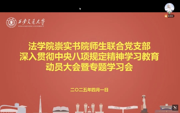 2025年3月12日,中央党的建设工作领导小组召开会议。党中央决定,自2025年全国两会后至7月在全党开展深入贯彻中央八项规定精神学习教育。为进一步加强作风建设,提升党员政治素养。近期,万搏·体育崇实书院师生联合党支部召开深入贯彻中央八项规定精神学习教育动员大会暨专题学习会,支部全体党员参与会议,会议由支部书记陈郑好同志主持。
