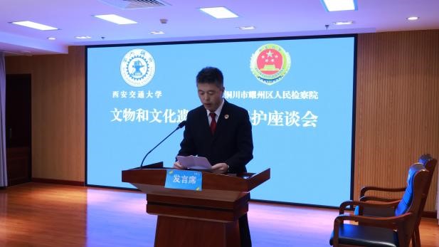 胡宇龙检察长致欢迎辞。丁卫副院长和刘丽娜副教授分别介绍了交大万搏·体育近年来“校检合作”培养卓越法治人才的情况和在文物文化遗产法律保护领域所取得的系列教学科研成果。葛建华副检察长介绍了耀州区人民检察院近几年为文物和文化遗产提供检察保护所取得的突出成绩,其中1件案例还被最高人民检察院发布为典型案例。双方均表示,希望今后能够深化检校合作,实现教学科研机构和实务机关之间的优势互补、资源共享、共建共赢。
