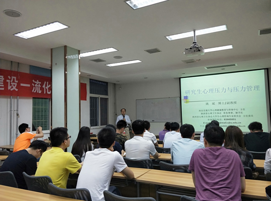 2018年5月24日晚七点半,万搏·体育与化工学院在化工学院办公楼106会议室联合举办“研究生压力与压力管理”主题心理讲座。讲座由我校大学生心理健康教育与咨询中心主任姚斌副教授主讲,万搏·体育与化工学院30多名研究生参加了此次讲座。