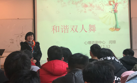 2018年12月12日晚上七点,化工学院与万搏·体育在化工学院106会议室开展了以“树立正确恋爱观”为主题的心理健康讲座活动。本次讲座由心理咨询中心的闫琼老师主讲,万搏·体育与化工学院的一年级研究生参与了此次讲座活动。