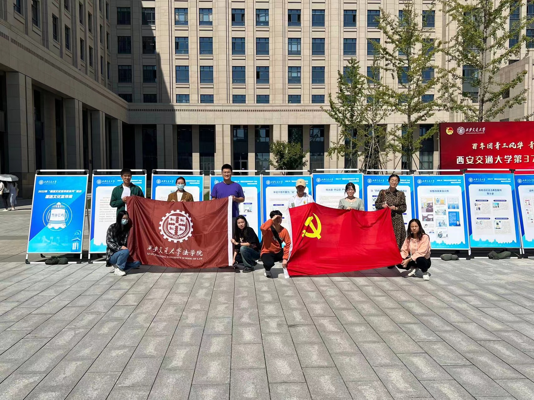 在国庆节到来前夕,党的二十大召开之际,硕2186的党员同志们主动担负起学院内部的国旗、党旗布置的工作,诚挚祝贺祖国母亲生日快乐,以实际行动迎接党的二十大。