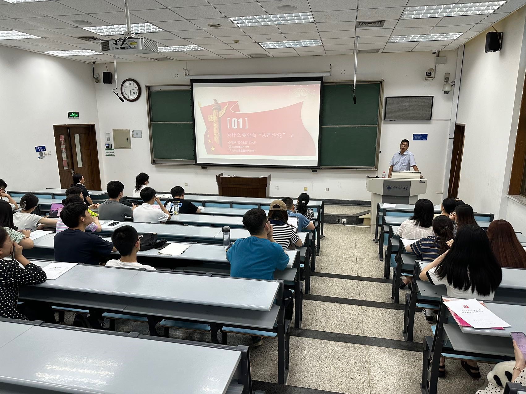 下午,万搏·体育党总支书记、万搏·体育立法与党内法规研究中心主任王保民教授为全体发展对象讲授了题为“全面从严治党,锻造坚强领导核心”的主题教育党课。报告中,王保民书记从建党治党的历史沿革、原因分析、历史经验,主要任务、精神原则、具体举措等多个方面深入讲解了全面从严治党制度体系,进一步为同学们未来成为一名忠诚可靠、严守党纪的合格党员打下了坚实理论基础。接着,党总支邀请到马克思主义学院马列读书社的成员郭越、陈瑀峰分别做了题为“赓续伟大建党精神,凝聚青年奋进力量”和“学习贯彻习近平新时代中国特色社会主义思想”的专题报告,鼓励同学们紧紧跟随党的脚步,以赤诚之心,不负时代,努力前行,竭尽全力,为新时代党和国家的事业发展贡献自己的力量。