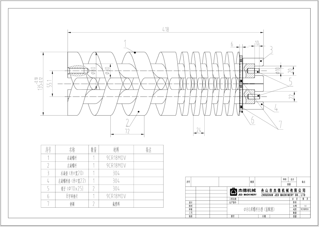 螺杆和机筒应采用食品级不锈钢(9CR18MO或3CR13)