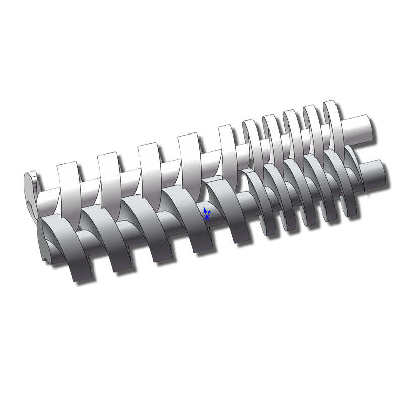 两个螺杆设计为沿相反方向旋转,以保持同步而不咬伤,例如控制碎块的均匀性